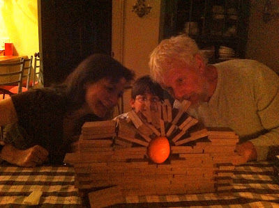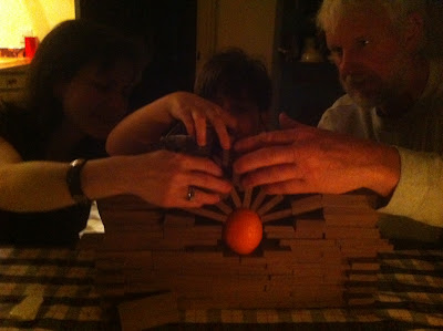 It nearly worked. Otto and I continued and experimented with several different ways of arch-vaulting using the same orange. Even though it never quite worked, the whole thing was still a good learning experience. It wasn't just some fruitless exercise!