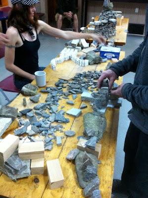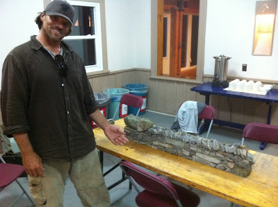 Last Friday, Saturday and Sunday, fifteen members of Dry Stone Walling Across Canada met for a lively retreat at the new site where Rocktoberfest will be held in the Caledon Hills, in southern Ontario. Hart House Farm, a property owned by the University of Toronto was chosen for the location of our annual DSWAC gathering as a convenient way to become familiar with this large country property where we will be presenting some exciting walling events during our four day Thanksgiving dry stone walling festival.As well as walking over the property to look over the many facilities on the farm, we spent time discussing the new direction of the DSWAC. Everyone cooperated in designing a special festival dry stone amphitheatre project for the farm and brainstormed together to come up with a new approach to running several of the other regular festival attractions. We attended evening presentations including one by Chris Lea director of activities at Hart House and Evan Oxland who recently returned from Japan where he studied dry stone castle construction.