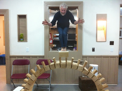 We made this miniature dry stacked wood block arch last weekend. It was strong enough that I could virtually stand on it too. Who needs Photoshop?