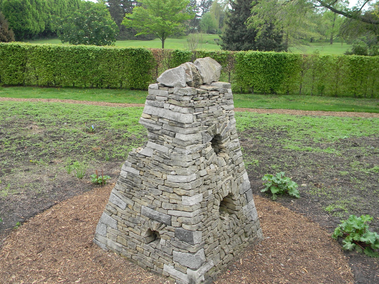 About 6 months ago a rather mean spirited colleague of mine took it upon himself to discredit me by uploading poor photos onto his walling blog that he took of something I had designed and had the opportunity of building 5 years ago at the horticultural school in Niagara Falls, along with several volunteer students and 4 volunteer wallers. We were asked to do something unique out of the stones they had on site at the park during the three days of the Niagara Garden Show. We were honoured to be asked and excited to do something for the school that was not going to have to be taken down after the show. Often we build things at garden and highland events that are very structural agreeing to take them down afterwards, even though people tell us they wish that the walls could be left there for their friends and family who missed the event so they could come and see later.