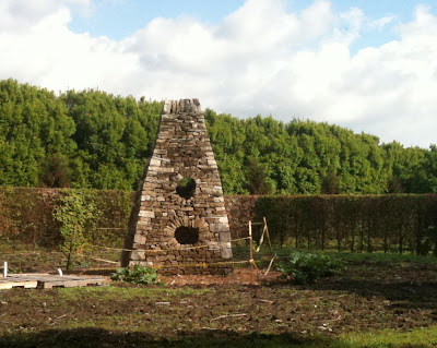 Our idea this time was to create something unusual that would generate even more interest in dry stone walling in Canada by showing a new aspect of what could be done than just walls. While the whole event was a great success and the much loved 'Cheese Wedge' still remained the pride of the school, it was starting to look like it was going to need a bit of restoring. Frankly we suspected this would be the case and have been monitoring it since it was first built. Last year 4, years after it was built when I went to inspect it, it still looked in mint condition. The picture below shows the condition it was in 2 months ago when I visited it again. It certainly didn't look as if any part of it was about to fall down. However we decided to make arrangements to have it repaired.